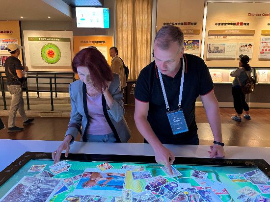 考察團成員體驗青啤博物館互動項目