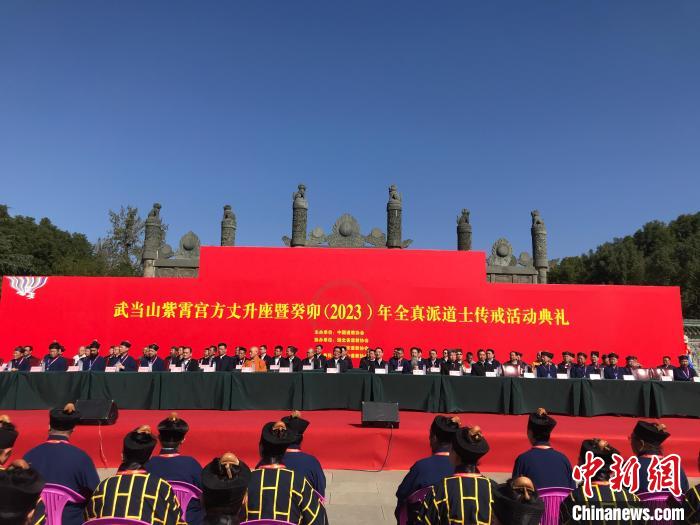 10月21日,武當山紫霄宮方丈升座暨癸卯(2023)年全真派道士傳戒活動典禮在湖北省丹江口市靜樂宮舉行。中國道教協(xié)會會長李光富道長升座武當山紫霄宮方丈。圖為活動現(xiàn)場。中新網(wǎng)記者 陳建新 攝