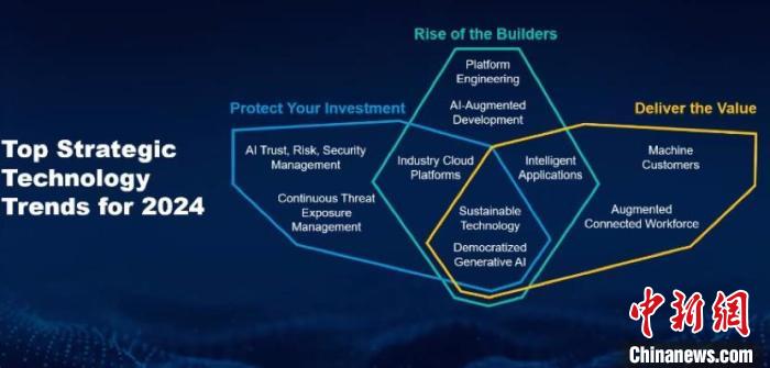 圖為高德納發(fā)布的2024年十大戰(zhàn)略技術趨勢。高德納供圖