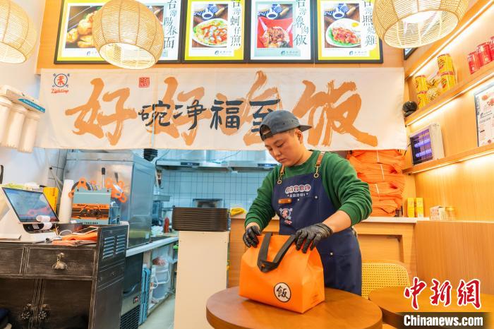 10月22日,臺灣餐飲人葉韋廷在重慶店內(nèi)將美食打包?!≈行律缬浾?鐘旖 攝