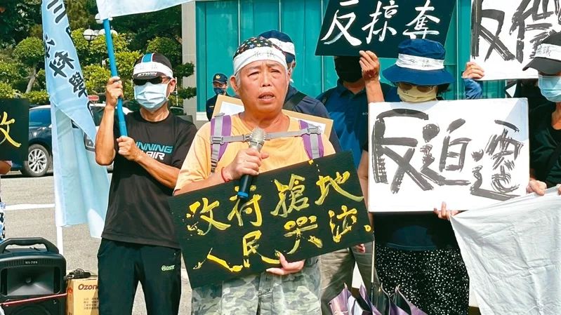 圖為遭征收區(qū)域的桃園居民不滿被征地,拉起布條抗爭。圖自《聯(lián)合報》