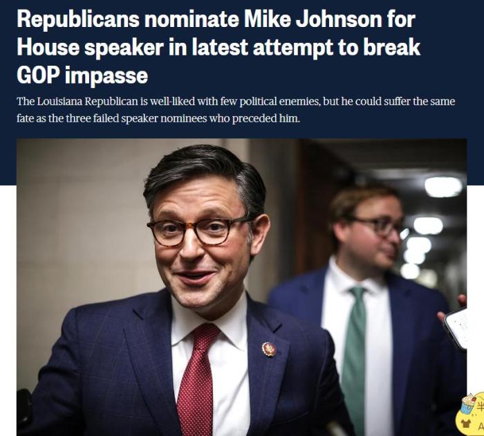 不過(guò),美國(guó)全國(guó)廣播公司(NBC)分析稱(chēng),約翰遜可能會(huì)遭遇與埃默相似的命運(yùn)。目前還不清楚他是否能獲得217張共和黨選票,從而贏得眾議院選舉投票。