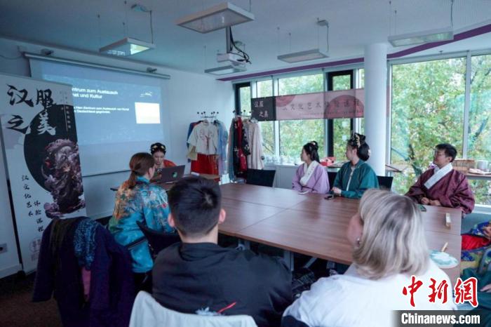 中新網(wǎng)柏林10月28日電 由漢景帝陽(yáng)陵博物院主辦的“漢服之美·漢文化藝術(shù)體驗(yàn)課程”活動(dòng)近日在柏林的漢文化藝術(shù)交流中心講堂(體驗(yàn)館)舉辦,數(shù)十名來(lái)自德國(guó)柏林的年輕漢文化愛好者與中國(guó)講師共同參與了活動(dòng)。