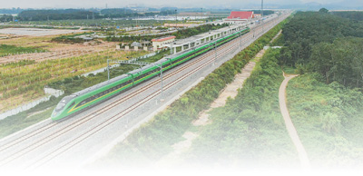 10月22日,動(dòng)車從中老鐵路橄欖壩站駛出(無人機(jī)照片)。