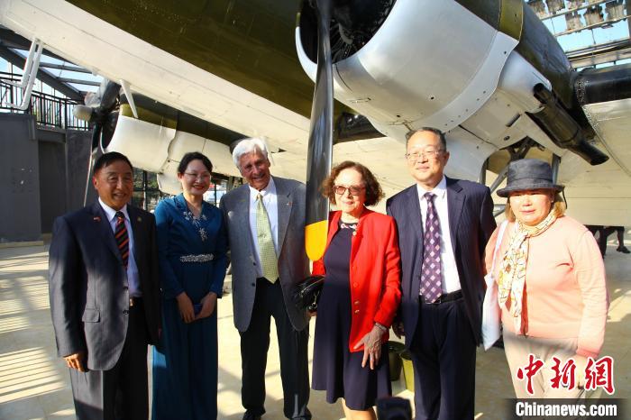 捐贈(zèng)儀式結(jié)束后,與會(huì)嘉賓共同參觀飛機(jī)館。辛西婭·陳納德看到曾在駝峰航線使用過(guò)的C-47運(yùn)輸機(jī)時(shí),她興致勃勃地爬上駕駛艙,并與美國(guó)飛虎隊(duì)歷史委員會(huì)總裁拉里·林恩·喬布一起向嘉賓揮手示意。