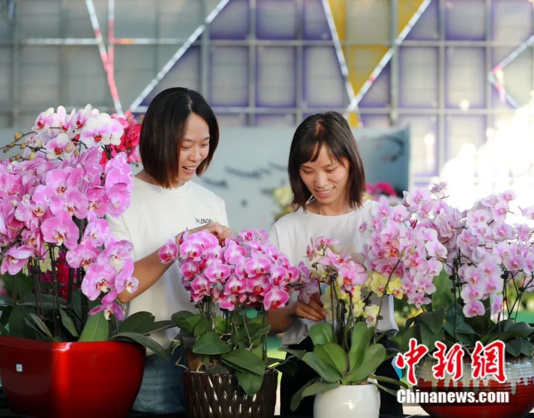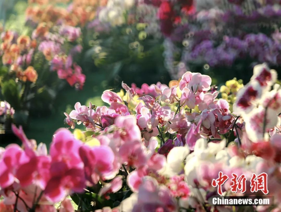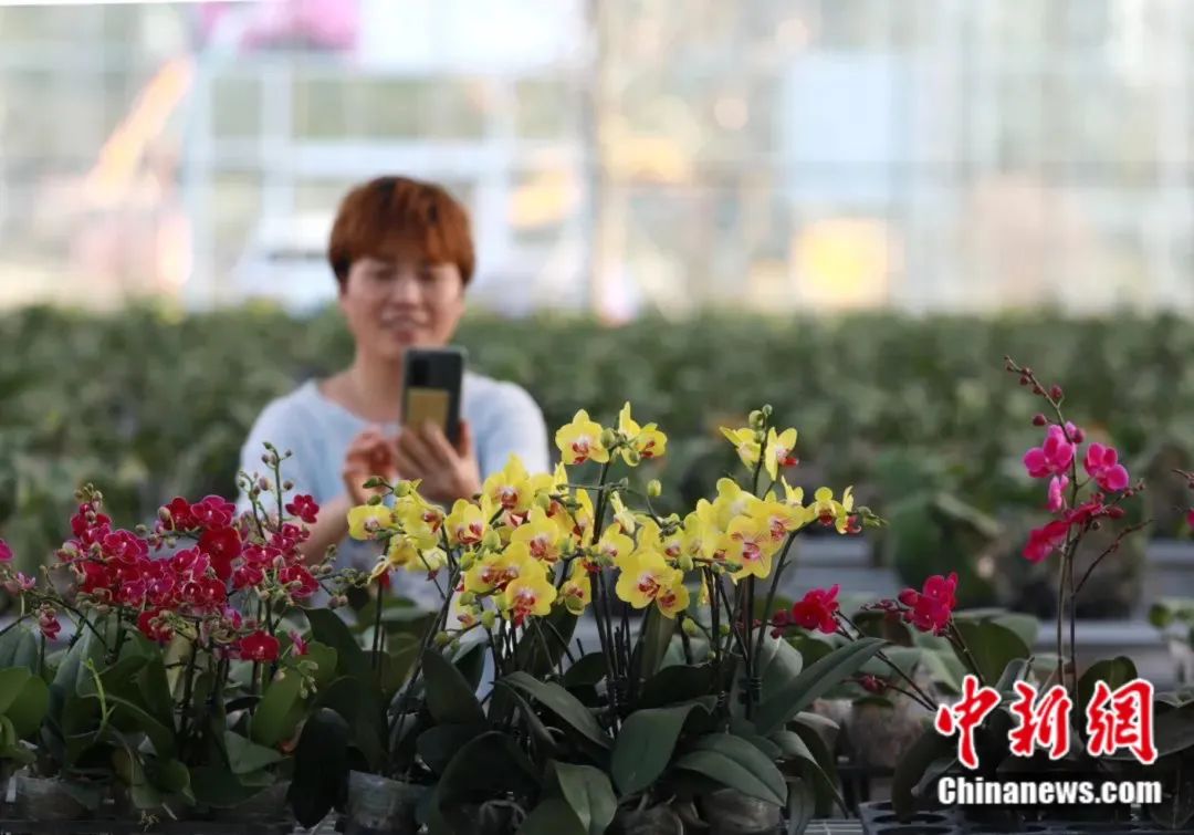 32萬平方米的溫室大棚內(nèi),不同品種的蘭花競(jìng)相開放,形成一片蔚為壯觀的蘭花海洋。