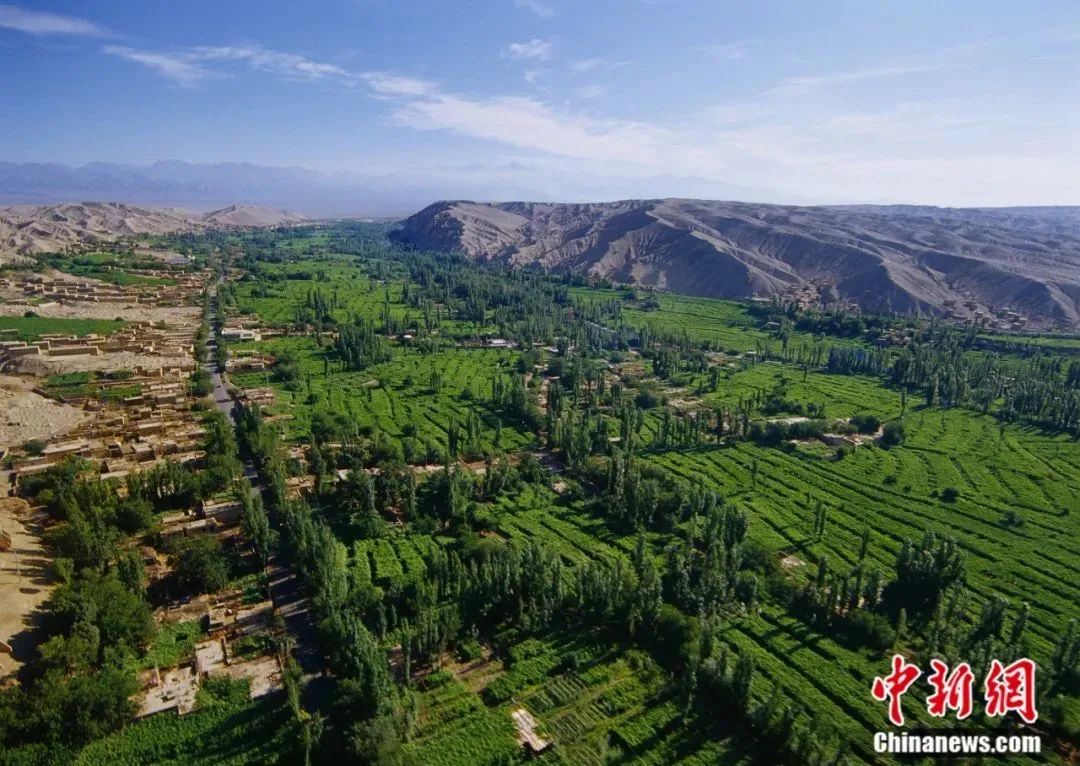 火焰山西側的峽谷中有一片綠洲