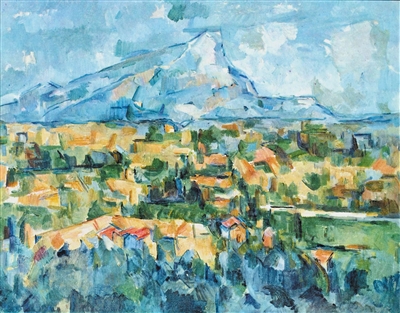 由此,塞尚、梵高、高更等藝術(shù)家的繪畫語言逐漸展現(xiàn)出不同于印象派的風格。塞尚在繪畫中拋棄了明暗和透視,尋求色彩與形狀的互相牽制,使畫面結(jié)構(gòu)更加穩(wěn)定嚴謹,制造出物與物之間的空間張力。他的油畫作品《圣維克多山》(見圖,曲音供圖)用冷暖色搭配勾勒出許多幾何形狀的色塊,形如房屋、狀似樹木,以相互交疊的視覺呈現(xiàn)替代了透視效果,暗示出遠近和前后關(guān)系,令畫面中的山峰無論從哪個角度觀看都顯得雄偉壯麗。