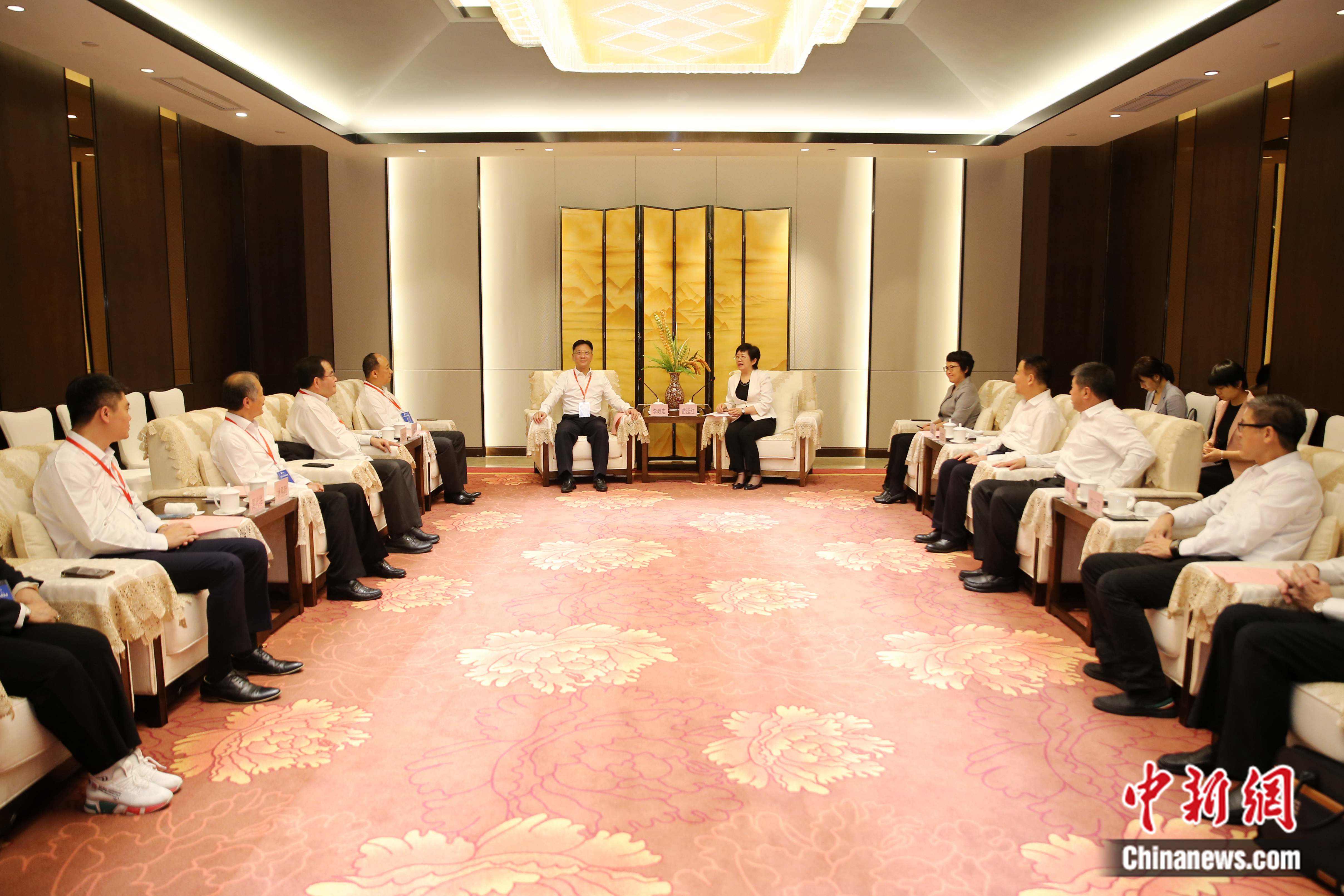 11月6日,海南省委常委、統(tǒng)戰(zhàn)部部長苗延紅在??跁妳⒓?023臺商峰會的部分嘉賓代表。海南省委統(tǒng)戰(zhàn)部供圖
