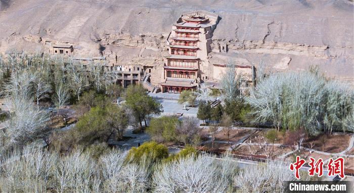 2022年4月,航拍敦煌莫高窟外景。(資料圖) 王斌銀 攝