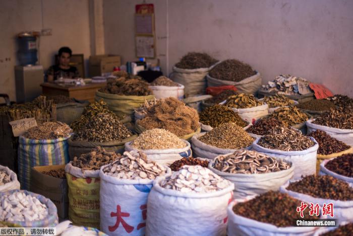 2015年6月21日,中國廣西玉林市一市場上出售的各種中藥材。