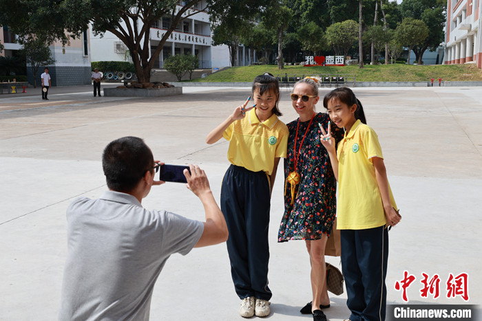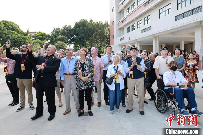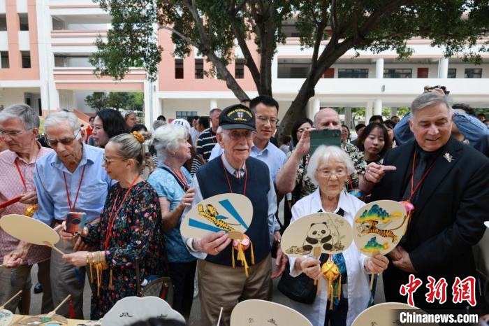 圖為飛虎隊后代與學(xué)生合影留念。 中新社記者 林馨 攝