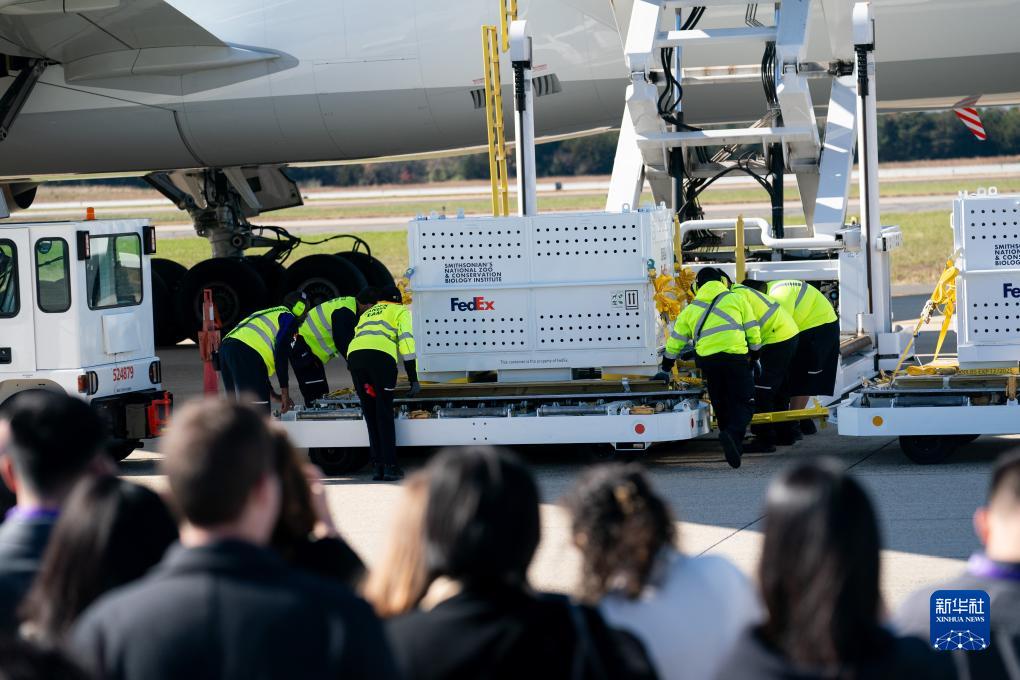 當(dāng)天上午,華盛頓史密森學(xué)會(huì)國(guó)家動(dòng)物園工作人員將三只裝有大熊貓的特制“旅行包廂”、220磅(約合100公斤)竹子、飲用水及相關(guān)物資運(yùn)上卡車(chē)。隨后,載有“美香”“添添”和“小奇跡”的車(chē)隊(duì)駛離動(dòng)物園,前往華盛頓杜勒斯國(guó)際機(jī)場(chǎng)。