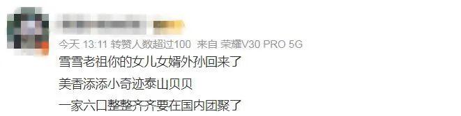 近來,“美香”夫婦和“小奇跡”回國的消息傳出后,有網(wǎng)友不禁感嘆,“一家六口整整齊齊要在國內(nèi)團(tuán)聚了!”
