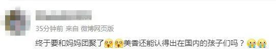 還有網(wǎng)友感慨,“終于要和媽媽團(tuán)聚了,美香還能認(rèn)得出在國內(nèi)的孩子們嗎?”