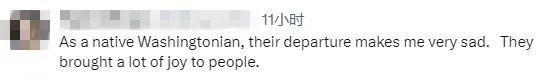 有網(wǎng)友說,“作為一個(gè)土生土長的華盛頓人,它們的離開讓我非常難過。它們給人們帶來了很多快樂。”
