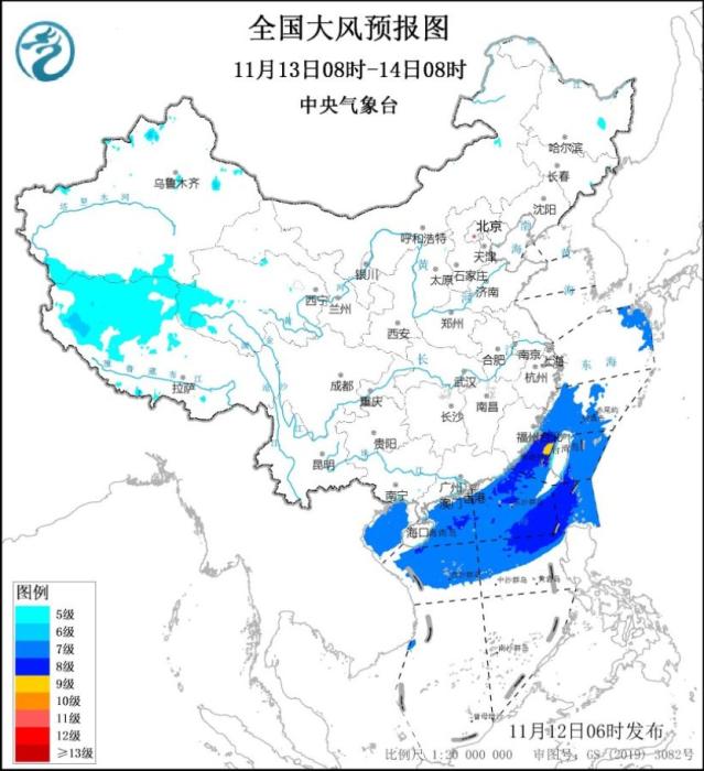 12日08時(shí)至13日08時(shí),新疆沿天山地區(qū)和南疆盆地、青海東部和西部、福建東南部沿海地區(qū)、臺(tái)灣島等地部分地區(qū)將有5~6級、陣風(fēng)7~8級的大風(fēng);東海大部海域、臺(tái)灣海峽、臺(tái)灣以東洋面、巴士海峽、南海北部和中部海域、北部灣將有7~8級、陣風(fēng)9級的大風(fēng),其中臺(tái)灣海峽部分海域風(fēng)力可達(dá)9級、陣風(fēng)10級。13日08時(shí)至14日08時(shí),新疆南疆盆地、西藏北部和西部、青海西部、福建東南部沿海地區(qū)、臺(tái)灣島等地將有5~6級、陣風(fēng)7~8級的大風(fēng);東海南部海域、臺(tái)灣海峽、臺(tái)灣以東洋面、巴士海峽、南海北部和中部海域、北部灣、瓊州海峽將有7~8級、陣風(fēng)9級的大風(fēng),其中臺(tái)灣海峽部分海域風(fēng)力可達(dá)9級、陣風(fēng)10級。中央氣象臺(tái)11月12日06時(shí)繼續(xù)發(fā)布大風(fēng)藍(lán)色預(yù)警。