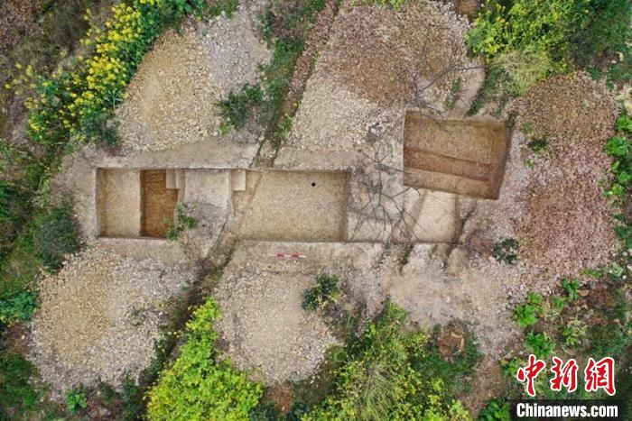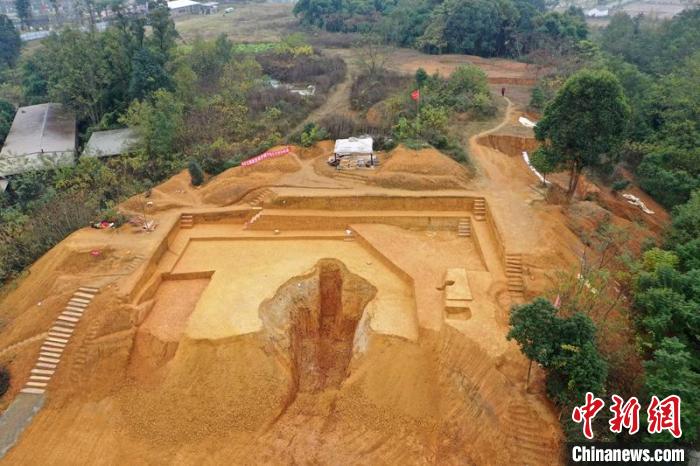 航拍壇罐山遺址考古發(fā)掘現(xiàn)場(chǎng)。眉山市文物局供圖