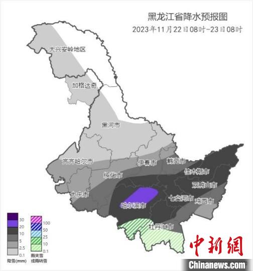 黑龍江省2023年11月22日8時至23日8時累計降水量預(yù)報圖。黑龍江省氣象局供圖