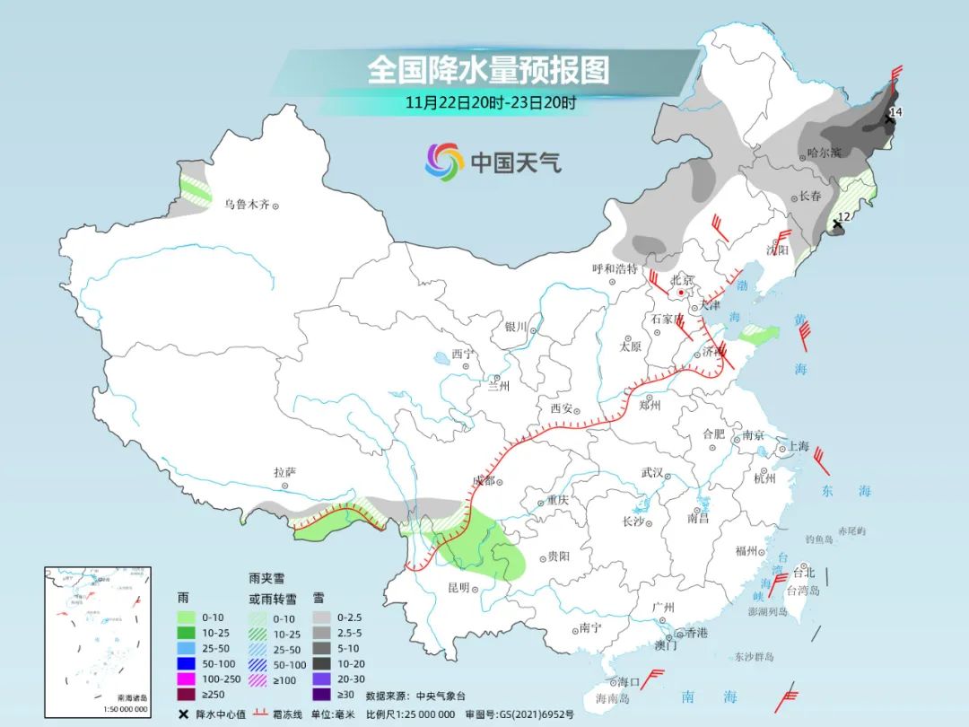 需要提醒的是,今天夜間至明天早晨,隨著氣溫下降,遼寧和吉林部分地區(qū)可能由雨轉(zhuǎn)雪,很容易導(dǎo)致路面濕滑、結(jié)冰,上述地區(qū)小伙伴外出時要格外注意交通安全。