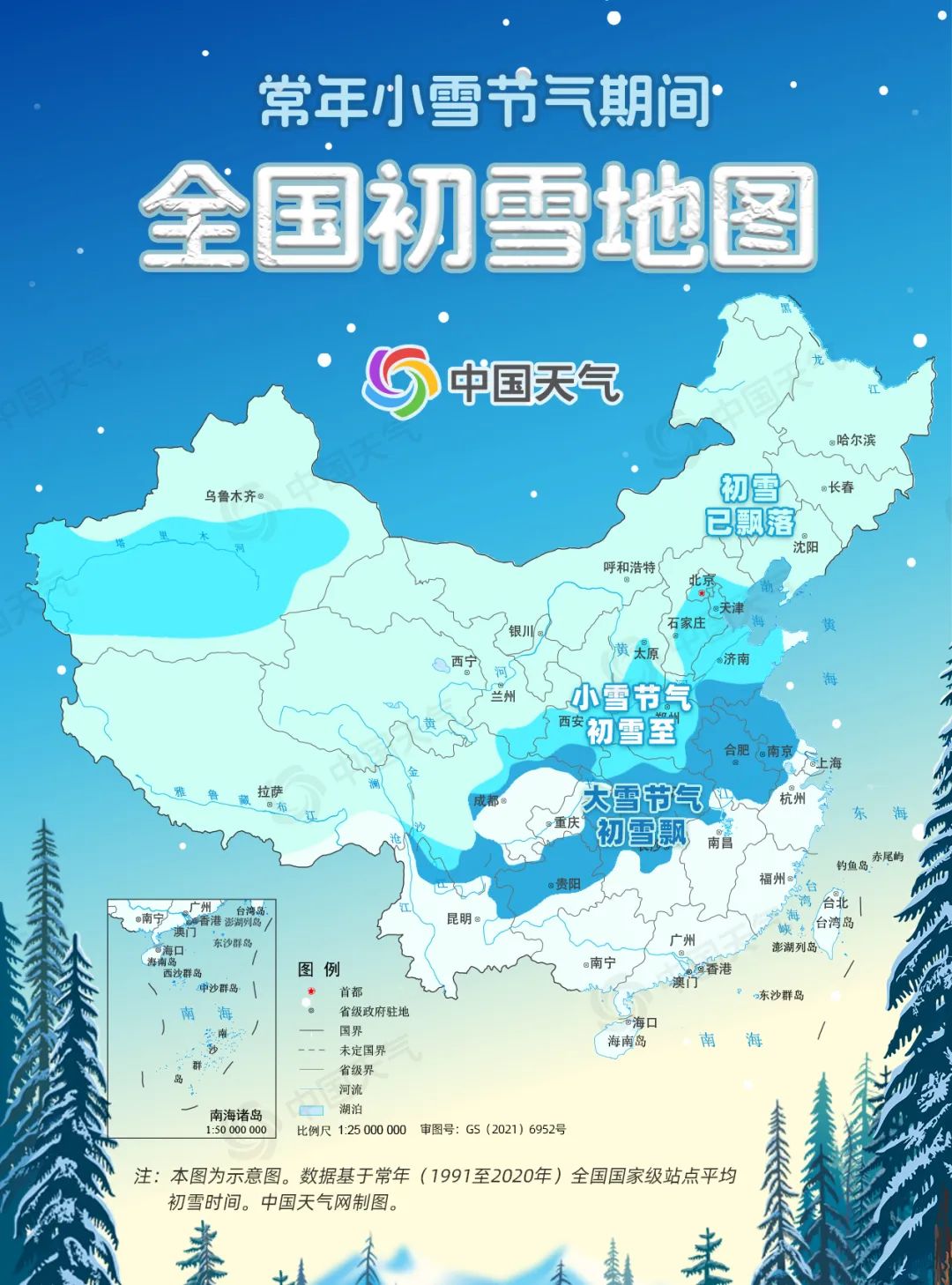 而從常年小雪節(jié)氣期間全國初雪地圖可以看出,除了華北、黃淮一帶會在小雪節(jié)氣期間迎來初雪以外,長江中下游地區(qū)一般要到大雪節(jié)氣才會見到雪花;至于再往南的華南地區(qū),一年中能不能見到雪確實(shí)就要看運(yùn)氣了。