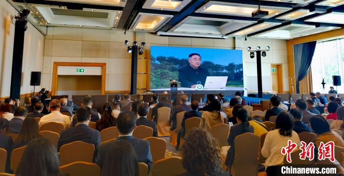 中國(guó)工程院院士張伯禮在研討會(huì)上發(fā)表視頻演講。李映民 攝