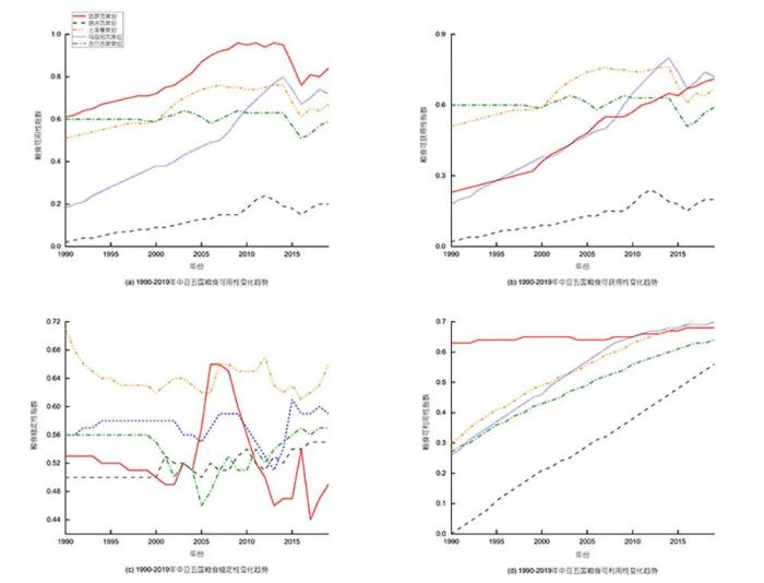 1990年-2019年中亞五國糧食安全二級指標變化趨勢。譚亮成 供圖