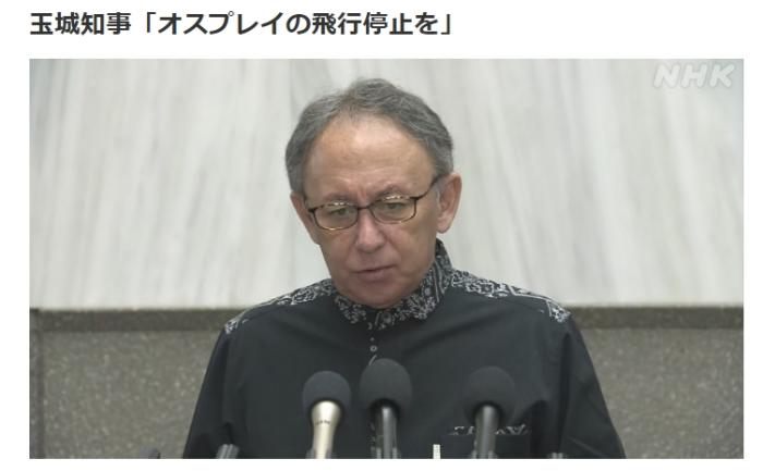 玉城表示,“正因沒有正視‘魚鷹’的危險性,才釀成了如此嚴(yán)重的事故,實在令人遺憾”,他強(qiáng)調(diào)目前非常擔(dān)心“魚鷹”在民用區(qū)域和民用機(jī)場起降成為常態(tài),呼吁駐日美軍立即停飛“魚鷹”,直至安全問題徹底解決。