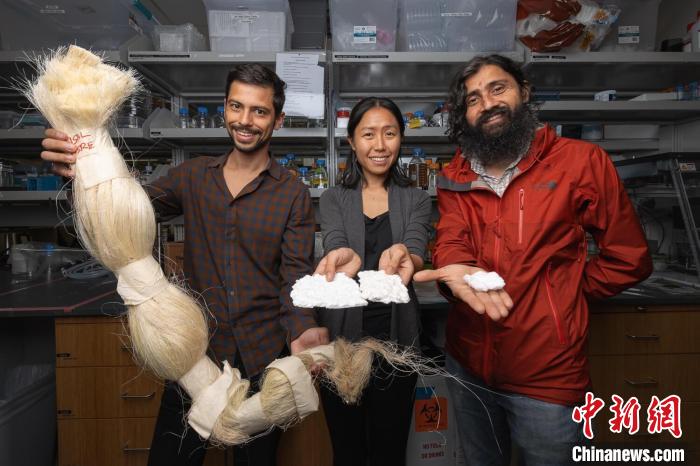 研究人員展示作為吸水填充物的劍麻(圖片來(lái)自斯坦福大學(xué)Andrew Brodhead)。施普林格·自然 供圖