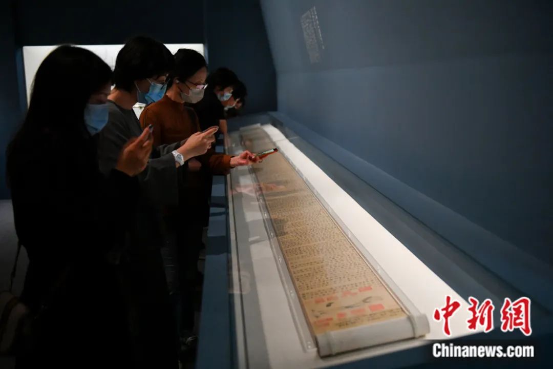 中國(guó)國(guó)家博物館展出的趙孟頫書(shū)《道德經(jīng)》卷吸引參觀者。趙文宇 攝