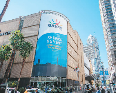 2023年8月23日,金磚國(guó)家領(lǐng)導(dǎo)人第十五次會(huì)晤在南非約翰內(nèi)斯堡舉行。圖為會(huì)場(chǎng)外景。
