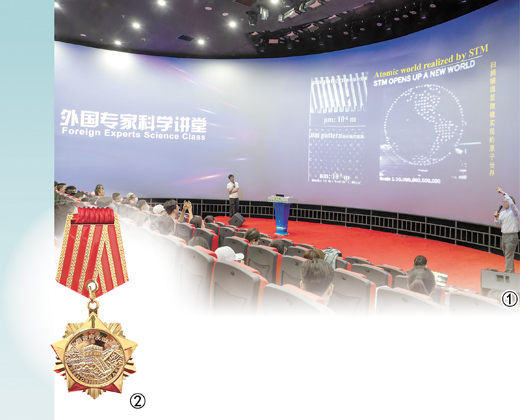 圖①:中國(guó)科技部國(guó)外人才研究中心主辦的2023年外國(guó)專家科學(xué)講堂系列活動(dòng),邀請(qǐng)各領(lǐng)域外國(guó)專家為中國(guó)學(xué)生及家長(zhǎng)普及科學(xué)知識(shí)。圖為一位外國(guó)專家(右)在北京天文館做物理講座。