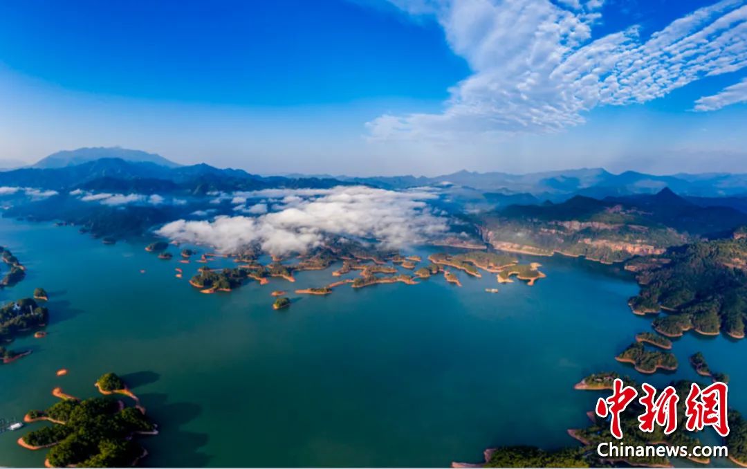 泛舟于有著“天下第一湖山”之稱的大金湖上