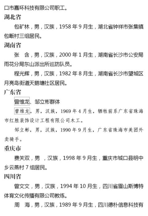 2023年第四季度見義勇為勇士榜名單 來(lái)源:中央政法委長(zhǎng)安劍微信公眾號(hào)