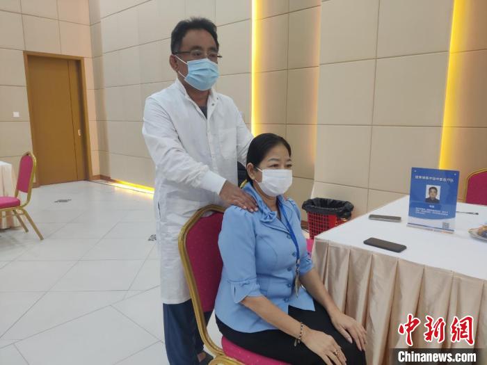 1月5日,中柬中醫(yī)藥中心、援柬中國中醫(yī)醫(yī)療隊赴柬埔寨國家銀行開展義診活動。援柬中國中醫(yī)醫(yī)療隊供圖