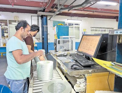 在位于巴林穆哈拉格島南部的巴林國(guó)際投資園區(qū),重慶國(guó)際復(fù)合材料阿巴桑玻璃纖維有限公司的工人在車(chē)間內(nèi)忙碌。 本報(bào)記者 張志文攝