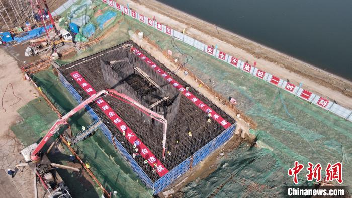中新網(wǎng)南京1月7日電(黃俊峰 楊道賢)7日,寧淮城際鐵路全線最大承臺——寧淮城際鐵路六合特大橋跨滁河矮塔斜拉橋澆筑。標(biāo)志著大橋進入主墩墩身結(jié)構(gòu)施工階段,項目建設(shè)進度穩(wěn)步推進。