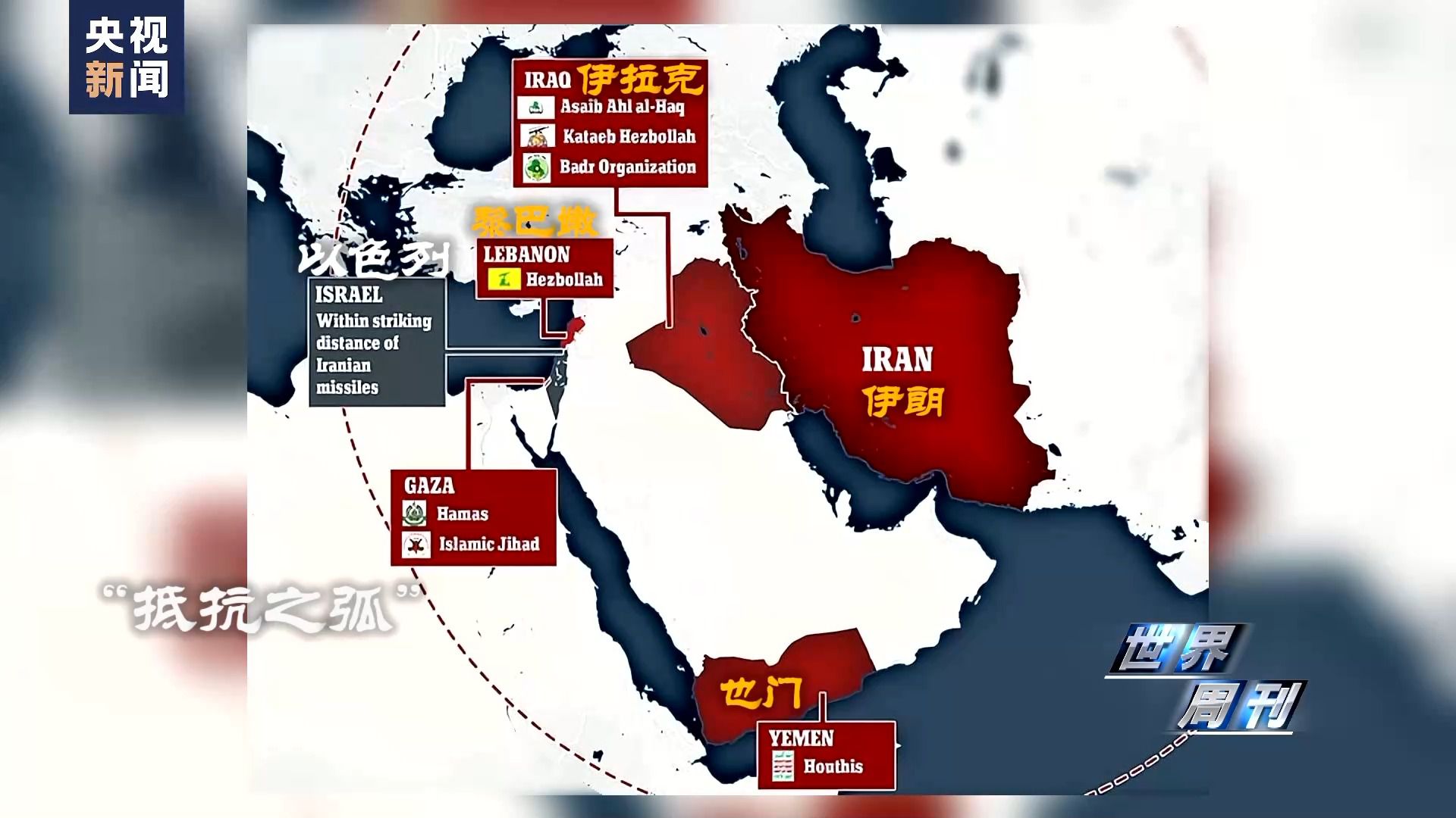 在《衛(wèi)報(bào)》看來,以伊朗為核心、以也門胡塞武裝、巴勒斯坦哈馬斯以及黎巴嫩真主黨等軍事力量建立起的中東什葉派“抵抗之弧”所積聚的反以情結(jié)或?qū)⒓斜l(fā)。