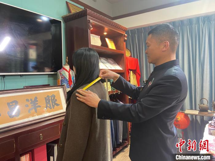 中新網(wǎng)寧波1月11日電(記者 林波)“特意打‘飛的’來浙江寧波找‘紅幫裁縫技藝’傳承人定做‘寶總’同款西裝?!苯眨瑏碜陨綎|青島的“西服愛好者”孫倪來到浙江省寧波市奉化區(qū)溪口鎮(zhèn)的王興昌洋服店,向該店“掌門人”王小方定做了一套西服。