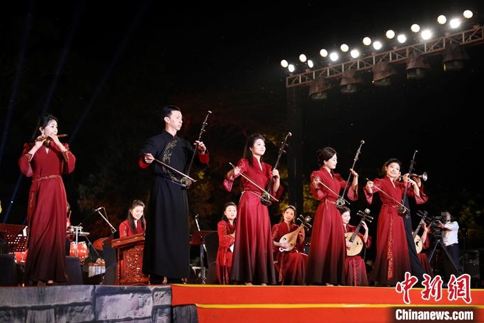 當(dāng)?shù)貢r(shí)間1月13日晚,“中柬人文交流年”啟動(dòng)儀式在柬埔寨暹粒舉行。圖為中國藝術(shù)家現(xiàn)場演奏。 中新社發(fā) 黎海月 攝