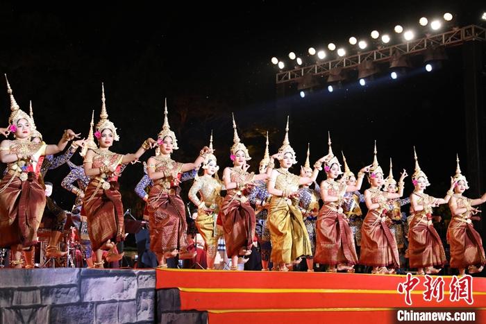 1月13日晚,“中柬人文交流年”啟動(dòng)儀式在柬埔寨暹粒舉行。圖為柬埔寨舞蹈藝術(shù)家表演傳統(tǒng)舞蹈。 中新社發(fā) 黎海月 攝
