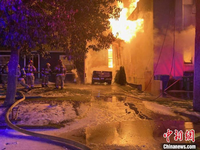 當(dāng)?shù)貢r(shí)間1月14日,消防員試圖撲滅發(fā)生在美國俄勒岡州波特蘭東北部一座教堂的大火。(波特蘭消防救援部門供圖)