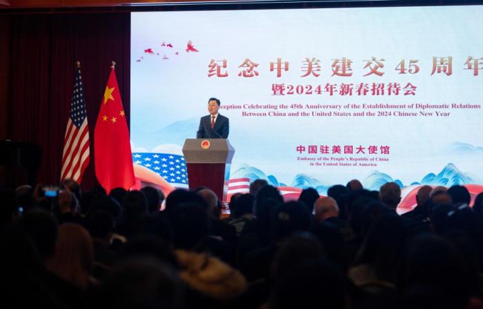 當?shù)貢r間1月16日晚,中國駐美國使館隆重舉辦紀念中美建交45周年暨新春招待會。謝鋒大使出席并發(fā)表致辭。