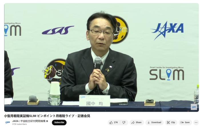 JAXA宇宙科學(xué)研究所所長國中均在新聞發(fā)布會上講話。圖片來源:日本宇宙航空研究開發(fā)機構(gòu)(JAXA)直播截圖