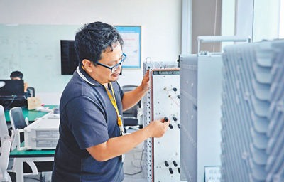 在泰國最大移動(dòng)運(yùn)營商AIS和中興(泰國)通信公司聯(lián)合創(chuàng)建的AIS—ZTE聯(lián)合創(chuàng)新中心內(nèi),泰國工作人員在對通信設(shè)備進(jìn)行檢修調(diào)試。