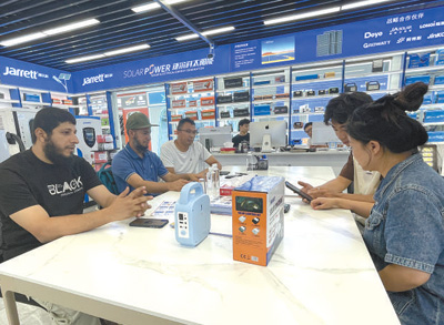 最近,埃馬紐埃爾又開始關(guān)注新能源產(chǎn)品?!翱溌∫恍┑胤酱嬖陔娏Χ倘?、供電不穩(wěn)的問題,很多當(dāng)?shù)厝讼M夷茉谥袊业胶线m的產(chǎn)品?!睘榇耍涯繕?biāo)瞄準(zhǔn)了義烏國際商貿(mào)城的新能源產(chǎn)品市場,尋找到一些適合喀麥隆的光伏設(shè)備。“中國的新能源產(chǎn)品性能可靠、性價(jià)比高,產(chǎn)品品類覆蓋領(lǐng)域廣泛?!卑qR紐埃爾表示,大到醫(yī)療機(jī)構(gòu),小到禽畜養(yǎng)殖場,中國光伏設(shè)備供應(yīng)的電力有助于滿足當(dāng)?shù)孛癖娚a(chǎn)生活的用電需求。