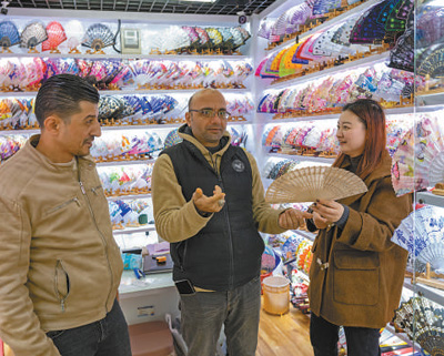 在義烏國際商貿(mào)城,外國客商忙著選購工藝飾品。