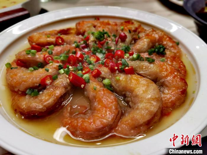 1月21日,臺(tái)青邱智良新餐館制作的辣子鮮蝦?!≈苎嗔?攝