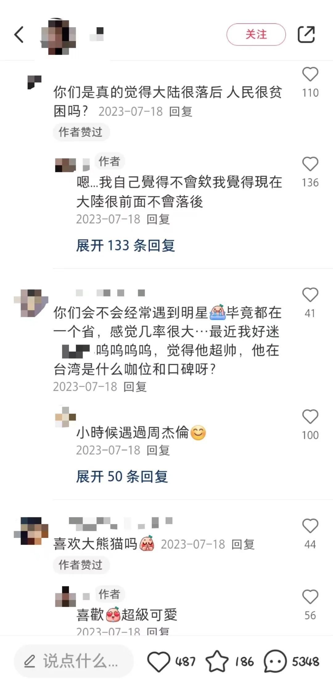 “大陸哪個(gè)城市的美食多?”“用現(xiàn)金支付可以嗎?”“畢業(yè)后想去大陸工作,可以分享一下經(jīng)驗(yàn)嗎?”……小紅書(shū)上有不少“臺(tái)灣人問(wèn),大陸人答”的帖子,兩岸年輕人就生活、文化、飲食等話(huà)題,在評(píng)論區(qū)留言、互動(dòng)。當(dāng)然,也有臺(tái)灣年輕人現(xiàn)身回答島內(nèi)情況,同樣熱評(píng)紛紛。