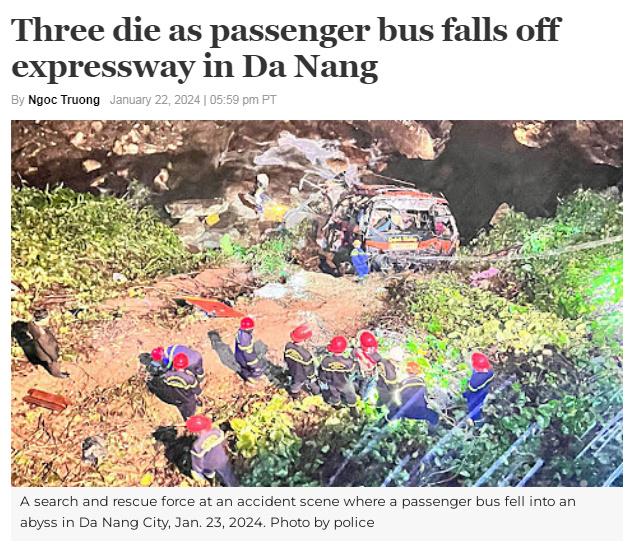中新網(wǎng)1月23日電 據(jù)越南媒體"VNexpress"報道,當?shù)貢r間1月23日凌晨1時30分左右,一輛大客車從越南峴港的高速公路上沖出墜崖,已致3人遇難、3人重傷。